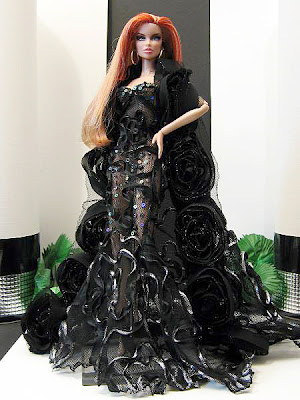 Black Lace arrived yesterday and I couldn't wait to rip open the shipper to see if this one was as wonderful as the first two. I was not disappointed. Of course I don't see how this one should be the same price as the others because she doesn't really have an outfit...but...the lingerie she is wearing is very nicely made. The sheer peignoir drapes nicely. The teddy underneath fits beautifully. Her hair is neat, not frizzy, and well done.